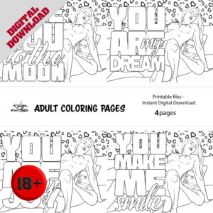 Allure & Ink Coloring Pack – 4 Erotic Line Art Illustrations with Love Quotes