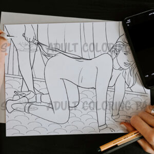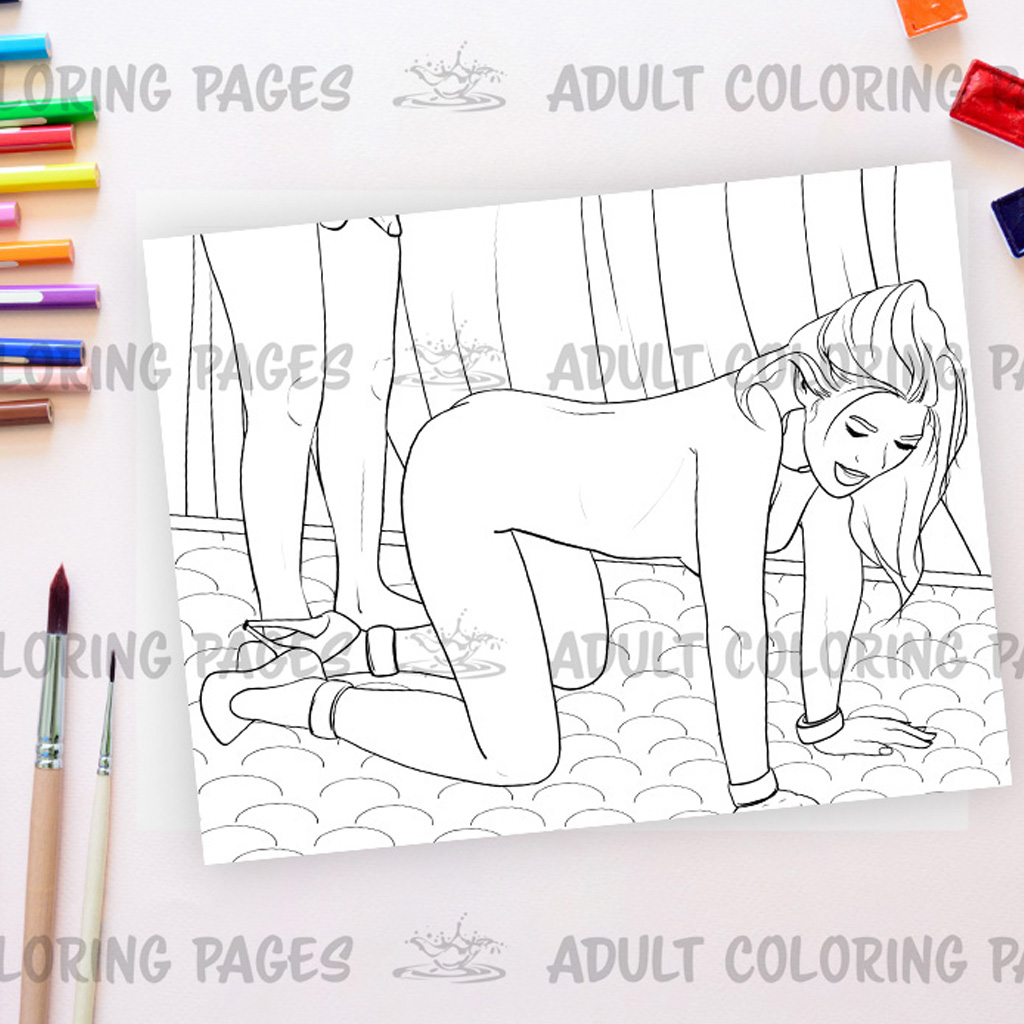Celebrate your creative spirit with this 3-page adult coloring collection, inspired by the charged tension and emotional depth within a consensual BDSM dynamic. This artwork features a submissive girl posed on all fours, her posture soft and obedient, while her dominant partner stands behind her holding a whip—symbolizing control, devotion, and mutual trust.