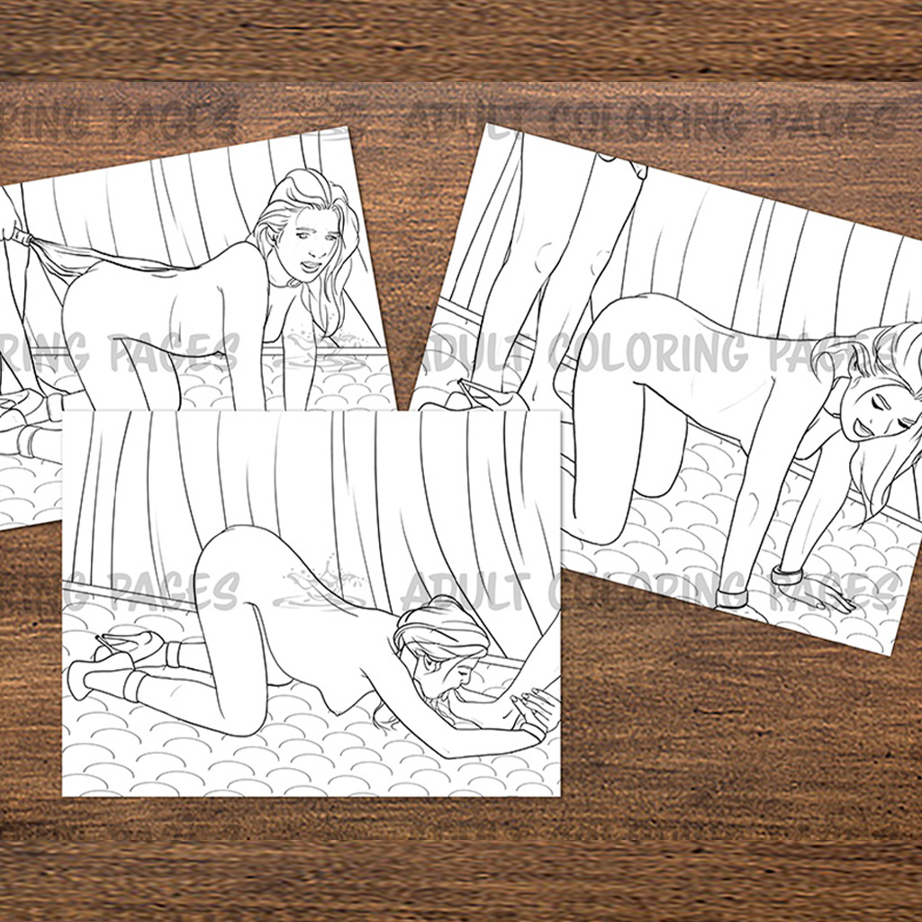 BDSM Pet – 3 Adult Coloring Pages, A4 and US Letter, JPG, 300 DPI