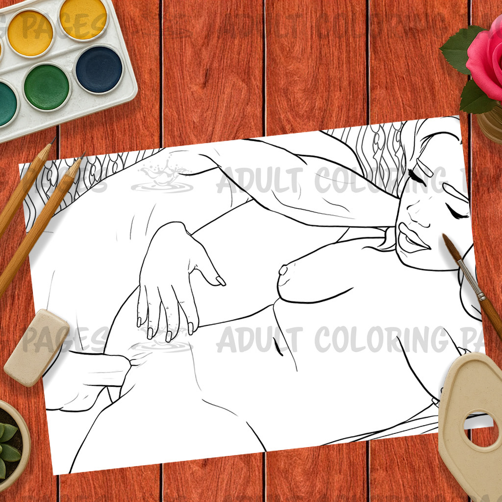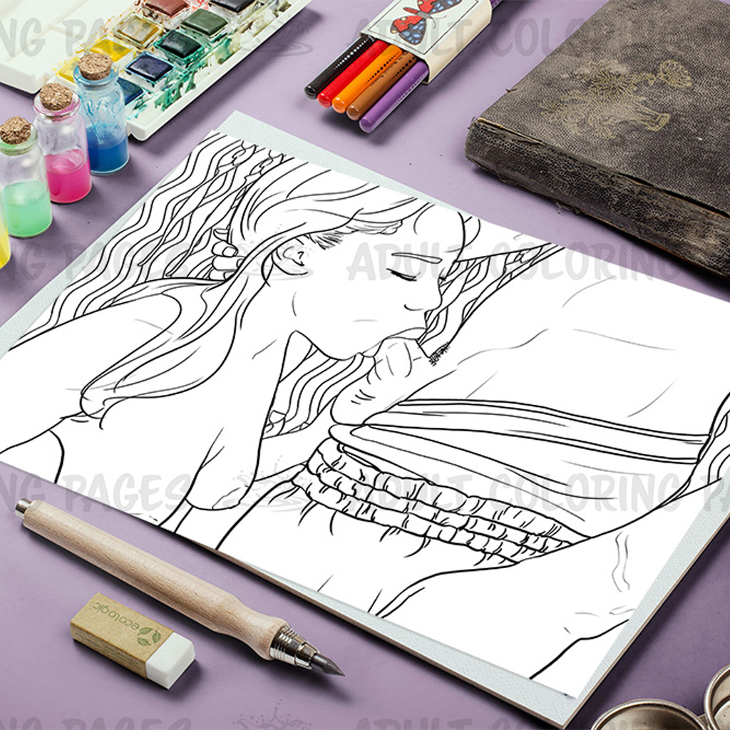 Celebrate your creative spirit with this 5-page adult coloring collection, inspired by the deep, passionate bond of a loving couple lost in each other’s embrace. This intimate illustration captures sensual touch, expressive desire, and a beautifully tender connection – presented in a tastefully erotic way that highlights emotion over explicit detail.