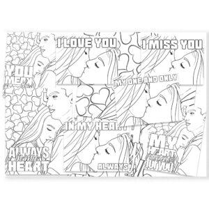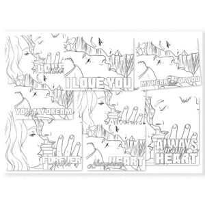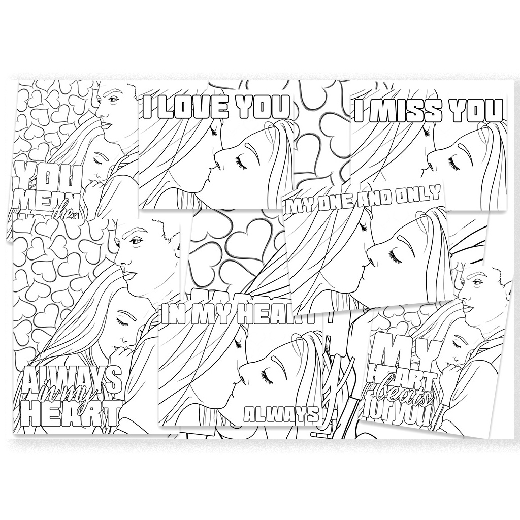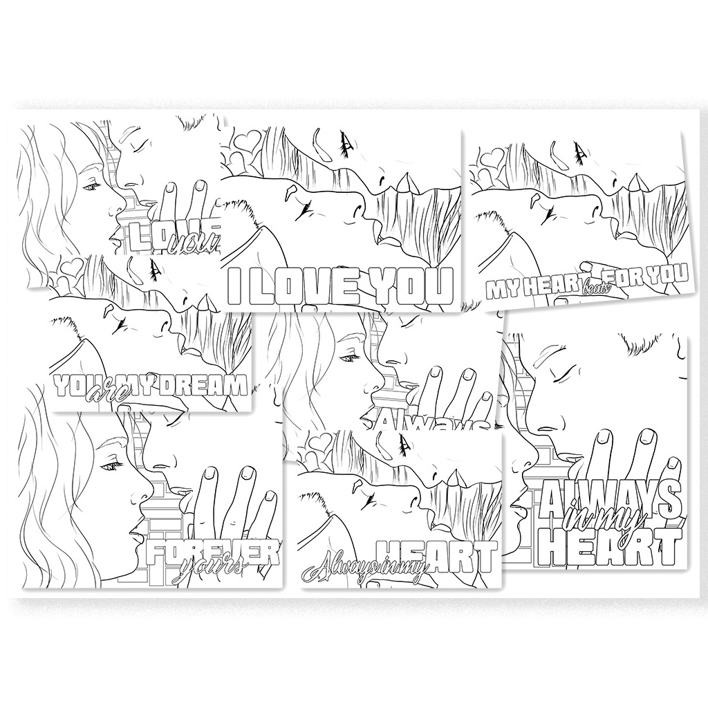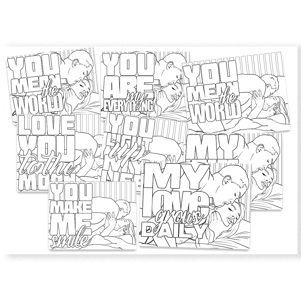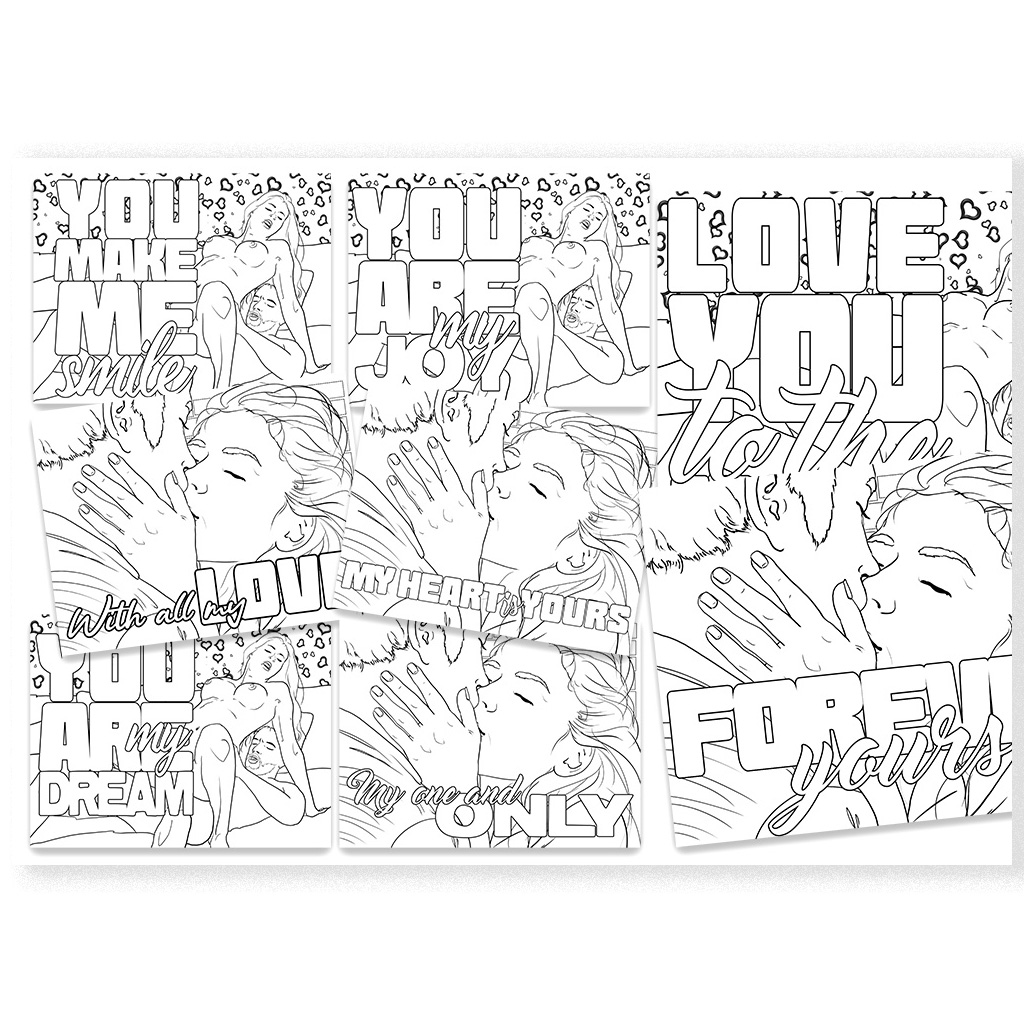 Each illustration has been carefully crafted with clean, smooth line art, making it easy and satisfying to color with a variety of tools including pencils, markers, gel pens, or digital tablets. Every variation includes a subtle, intimate love note, adding a charming and personal touch to your artistic journey.