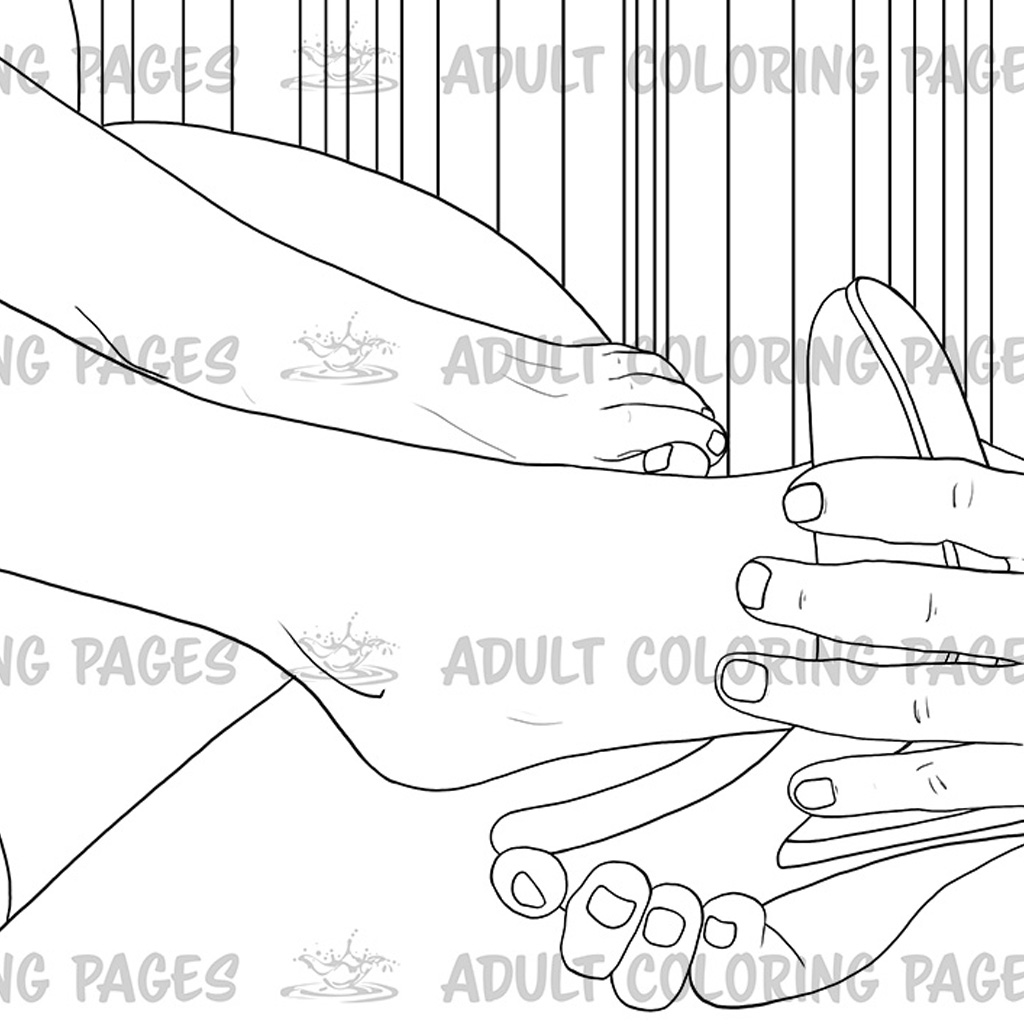 Indulge your artistic side with Foot Fantasy, a detailed adult coloring pages designed for those who appreciate sensual touch, intimacy, and the beauty of feet. These close-up illustrations capture a soft, erotic moments of connection—gentle hands, relaxed toes, and a slow, teasing caress. The clean line art and flowing background create a calming space for erotic mindfulness, relaxation, and creative expression.