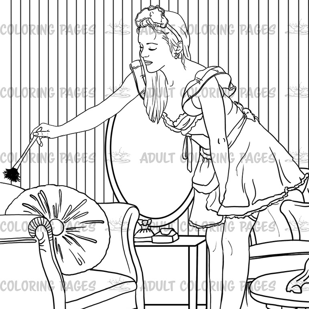 Maid’s Adventures – 4 Adult Coloring Pages (A4 & Letter Sizes)