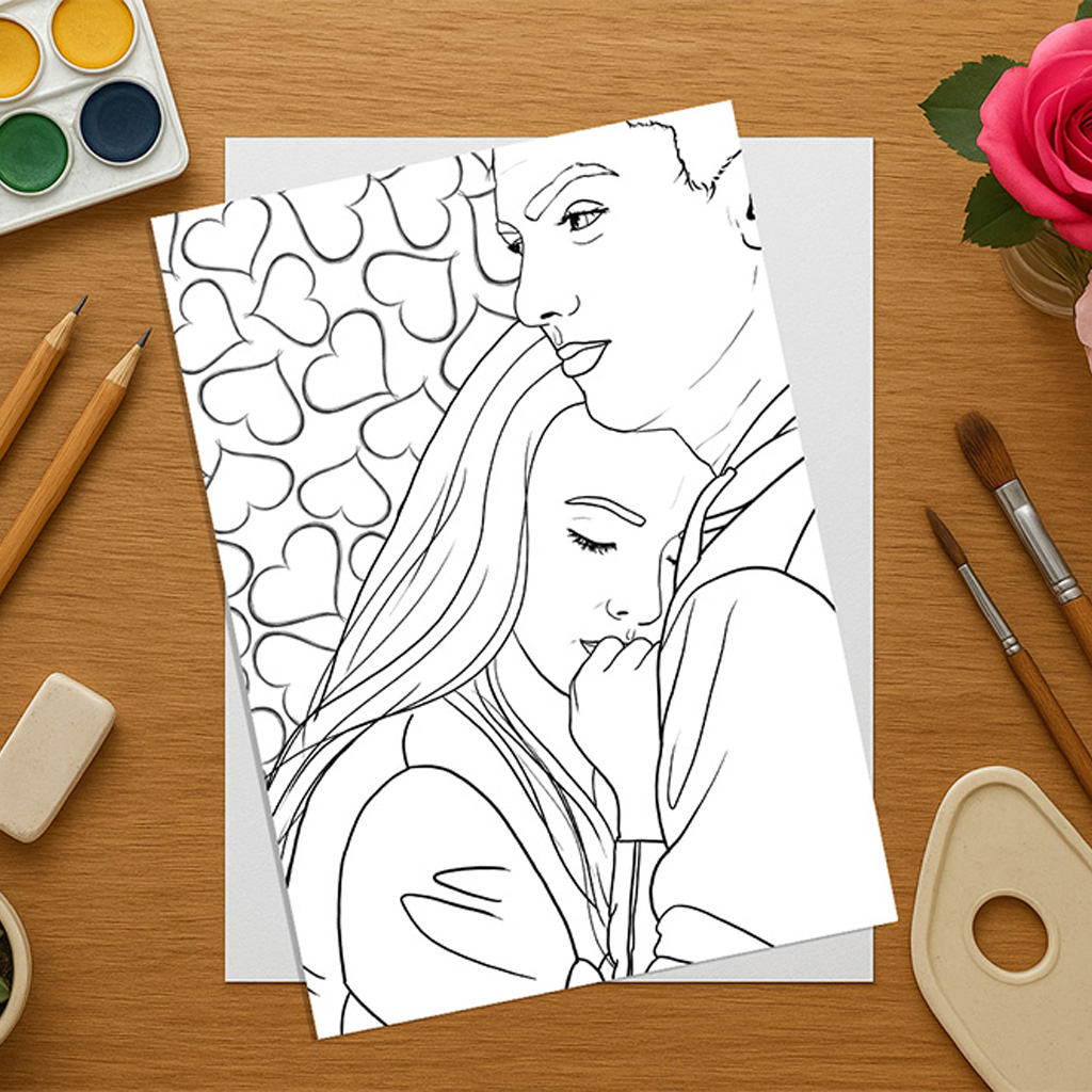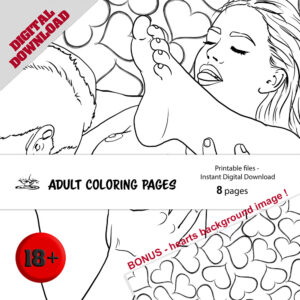 This adult coloring set includes eight detailed illustrations of a loving couple in intimate, caring poses. Each page captures sensual connection, soft closeness, and natural erotic affection. The artwork is designed with clean, smooth line work to ensure an enjoyable coloring experience for both beginners and advanced colorists.