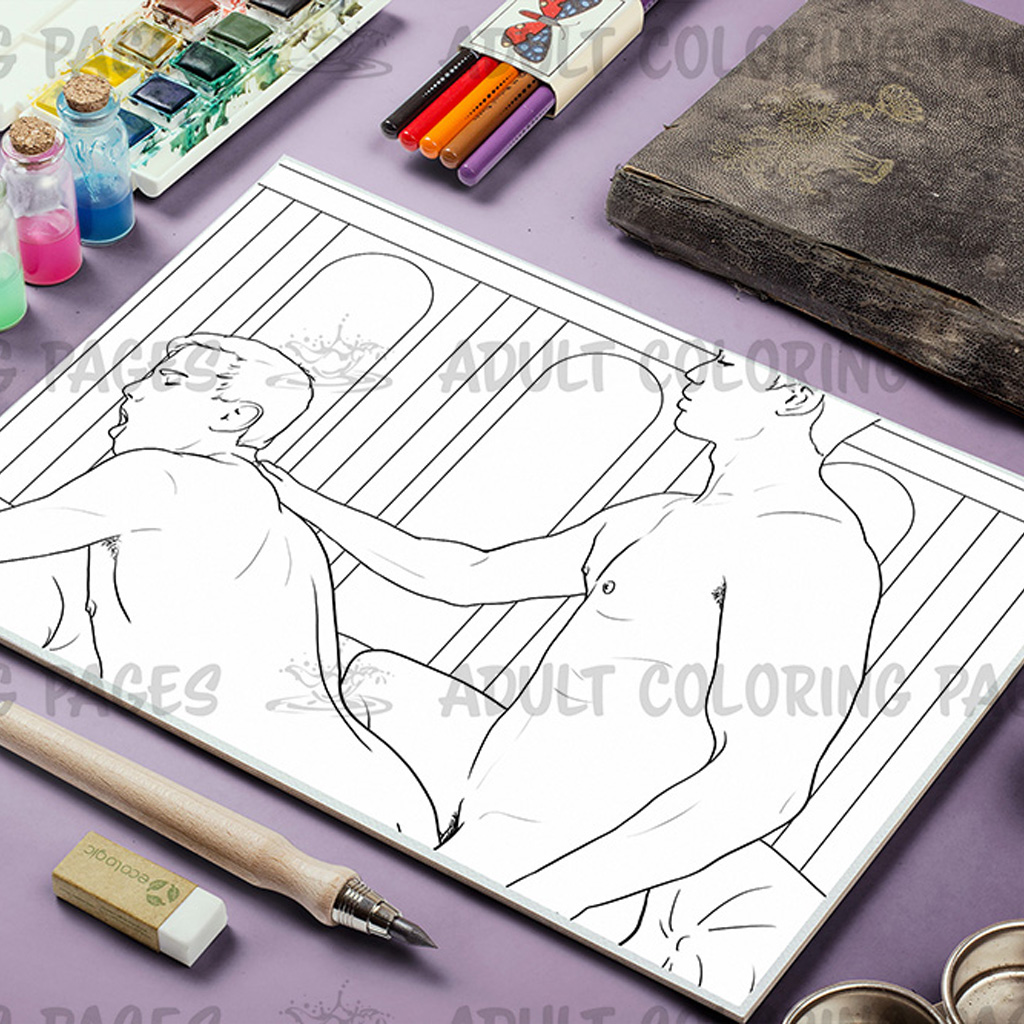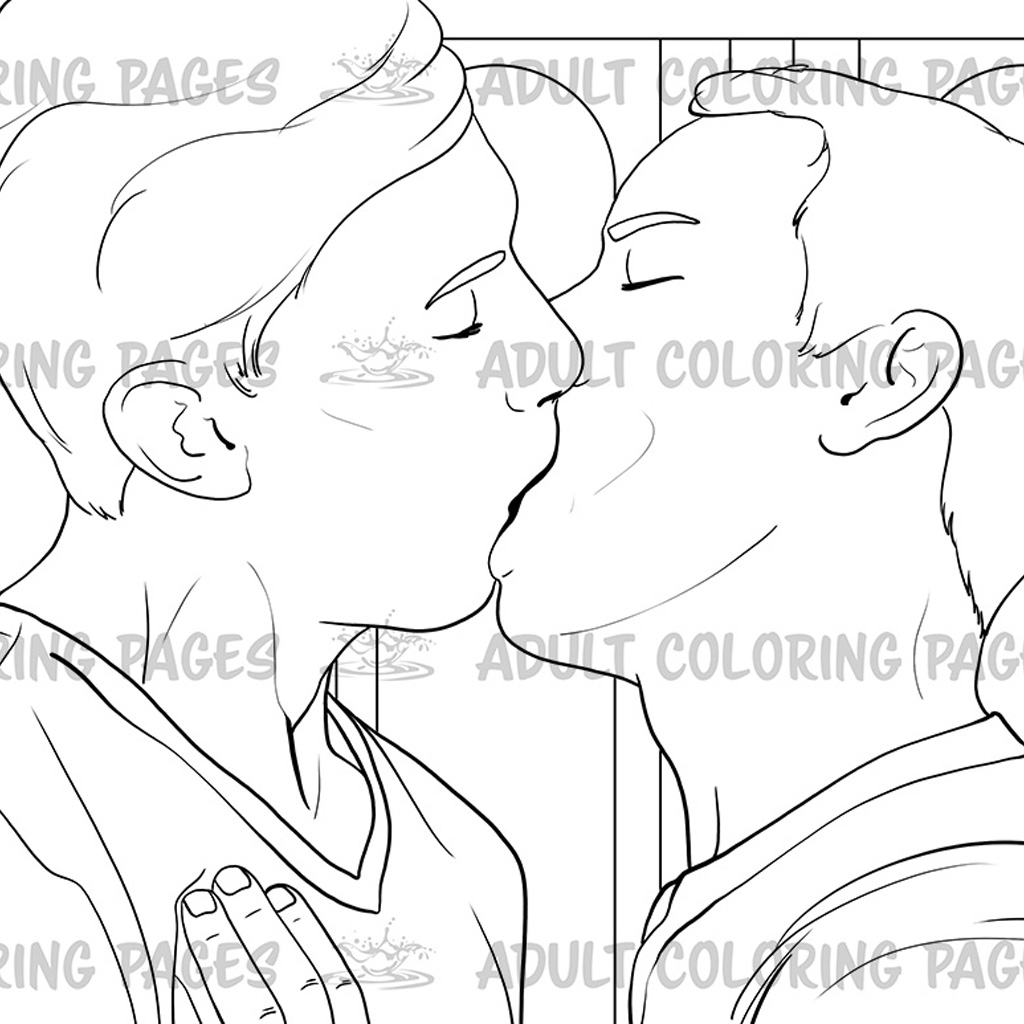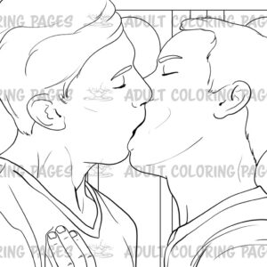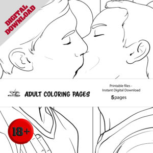 This LGBT-friendly adult coloring set includes five intimate illustrations of a loving male couple. Each page captures warm affection, gentle closeness, and romantic poses designed to offer a relaxing and expressive coloring experience.